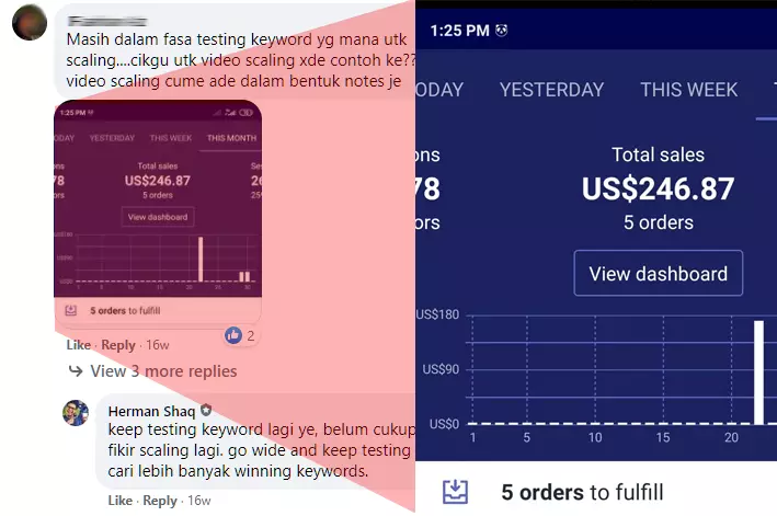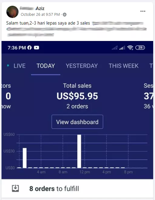 dropshipping!Dan sejak hari tu, saya dah tak berpatah balik. Dalam setahun selepas itu, saya dah berjaya jana sales ½ juta ringgit menggunakan sistem Dropshipping-On-Steroids ni.